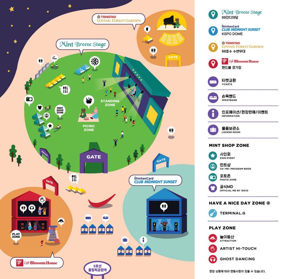 – Mint Breeze Stage 도어 오픈 시에는 메인 게이트로만 입장이 진행됩니다. 서브 게이트는 오후 1시 오픈 예정이나, 메인 게이트 입장 상황에 늦어질 수 있습니다.