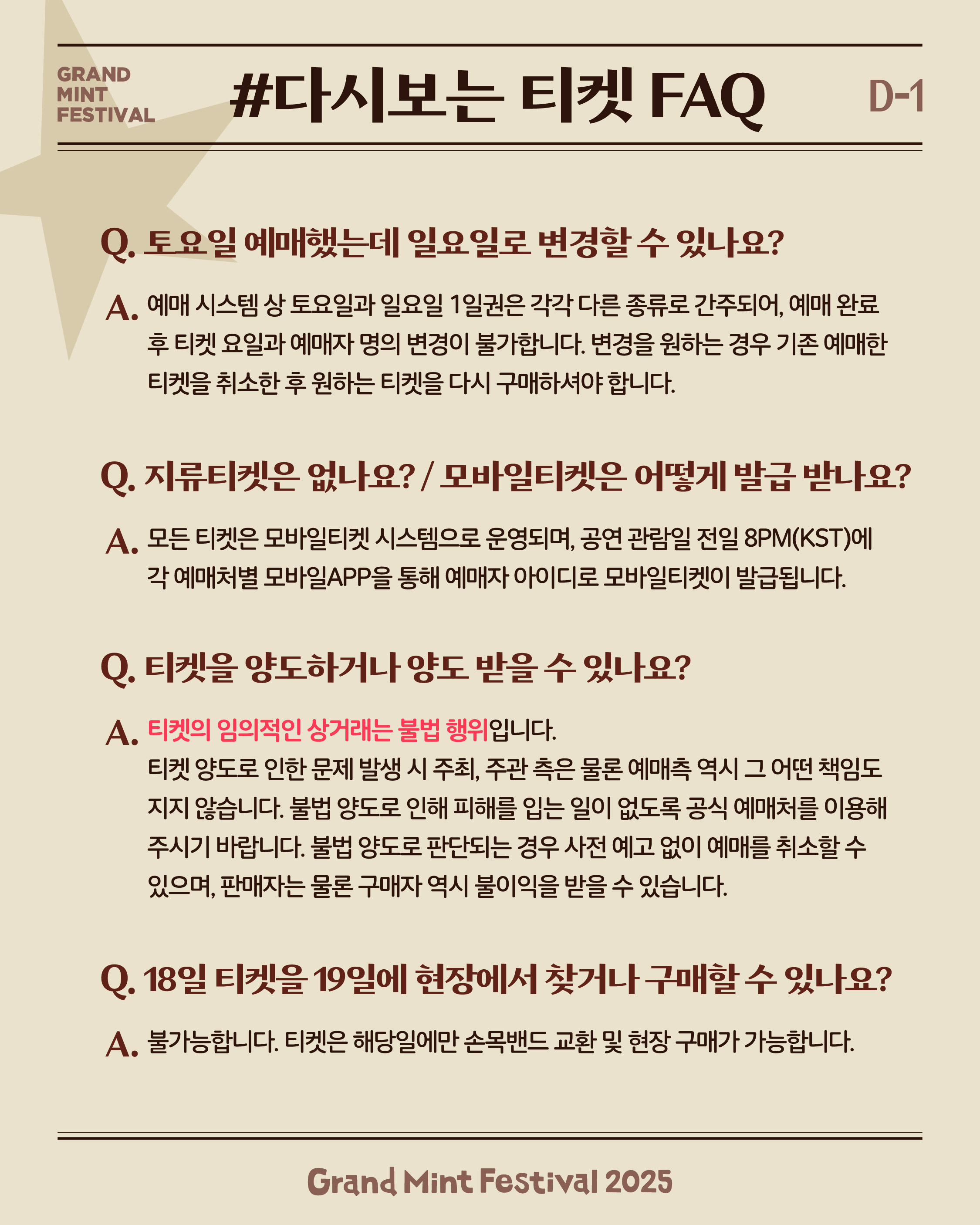 오시기 전 티켓 관련 안내사항을 확인해보세요 :)