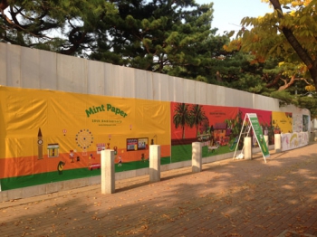 민트 브리즈 스테이지 게이트. 올해 게이트는 영상입니다! 지금은 아무것도 없어 보이지만, 여러분이 현장에 오셨을 때는 다른 모습일 거에요. / 2007년~2016년 포스터, 통계로 보는 히스토리 내용 외에도 사진 찍기 좋은 예쁜 디자인의 현수막들을 동선에 다량 부착했습니다.
