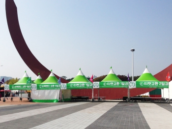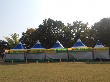 올림픽공원 역에서 나오시면 만나게 될 4면 포토월 / 한얼광장에 마련된 티켓 & 손목밴드 부스. 인포메이션과 현장판매, 물품보관소는 티켓 부스를 바라보고 왼쪽 편에 별도로 마련되어 있습니다.