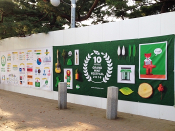 준비가 한창인 러빙 포레스트 가든 / CMS 방면 서브 게이트 인근에 부착된 아티스트 개별 포스터. GMF2016 일정이 마감될 때까지 떼어가지 말아주세요.