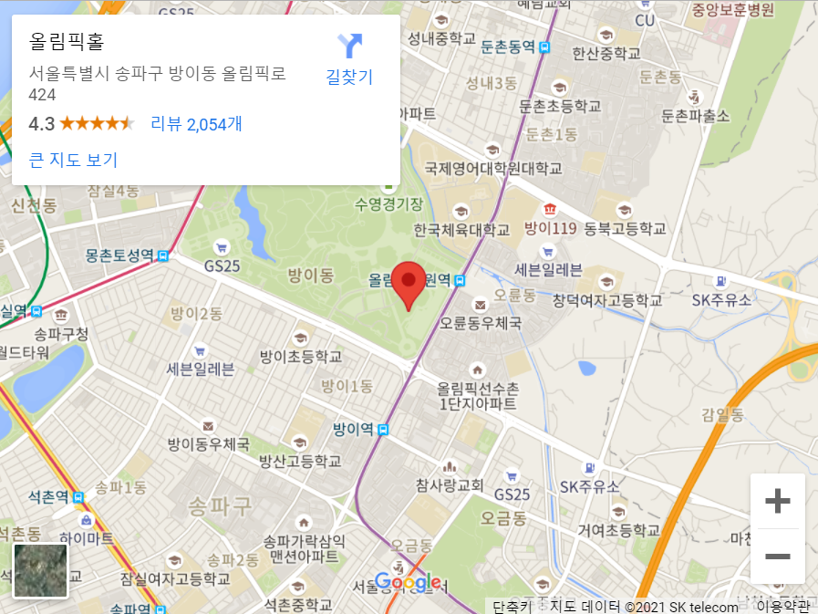 서울특별시 송파구 방이동 88-2 올림픽공원 동2동 / 02-425-1535