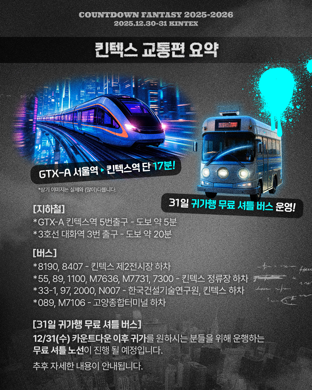12월 31일 카운트다운 종료 후 귀가행 무료 셔틀이 운행이 운행됩니다.