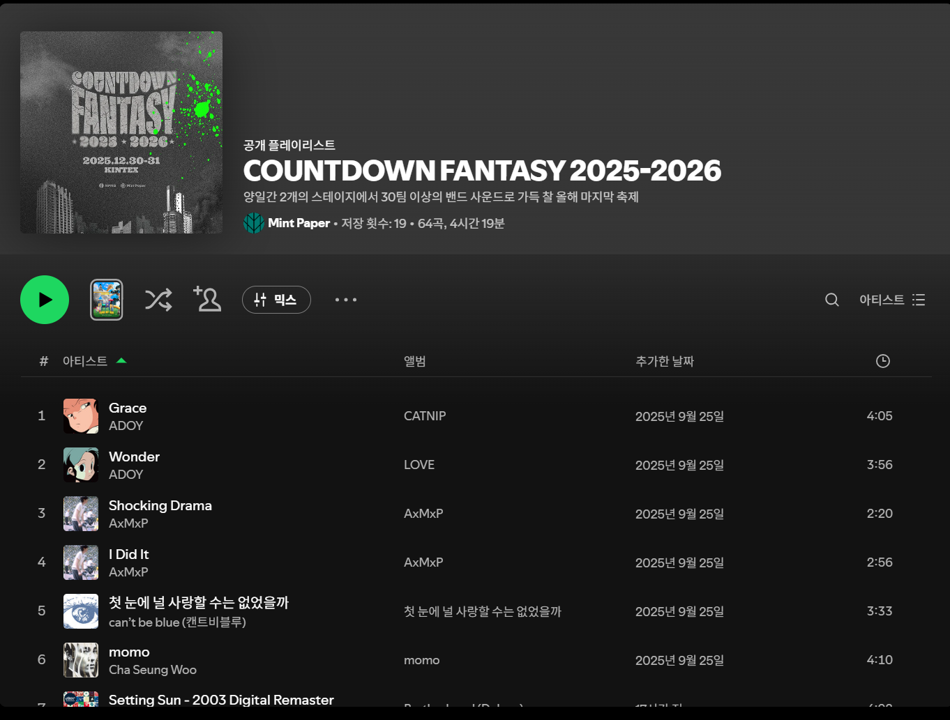 CDF2025-2026 BGM 바로가기 > SPOTIFY